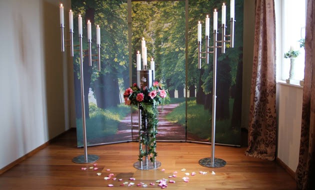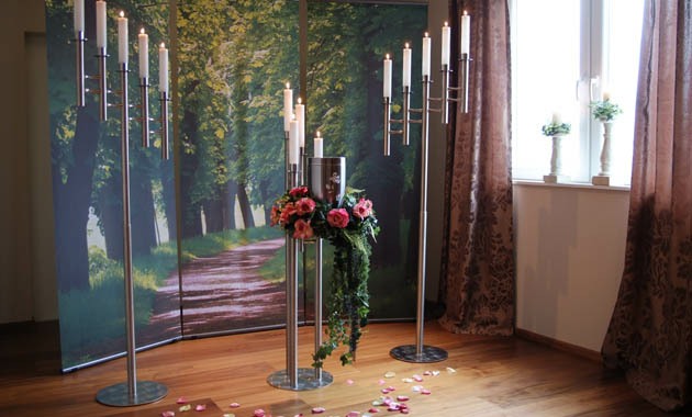 Abschiedsraum In unserem Abschiedsraum haben die Angehörigen die Gelegenheit von Ihren Verstorbenen in aller Stille in würdiger Atmosphäre Abschied zu nehmen. Des Weiteren können kleine Trauerfeiern abgehalten werden. Zurück 1von5 Vor